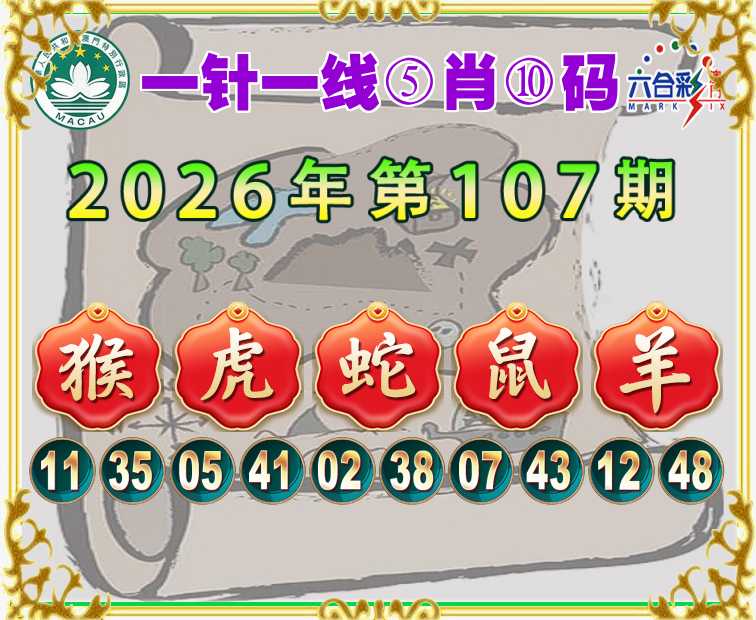 107期: 『一针一线』 ⑤肖⑩码【猴虎蛇鼠羊】开:马49